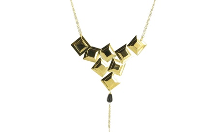 Or, calcédoine blanche, émail, soufflure de perle en pendant